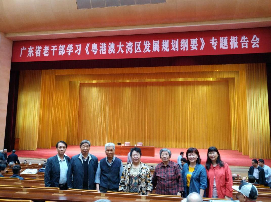 4月16日上午,由广东省委老干部局举办的广东省老干部学习《粤港澳大湾区发展规划纲要》专题报告会在广州珠岛会堂举行。《粤港澳大湾区发展规划纲要》省委宣讲团成员、省政府发展研究中心巡视员李惠武作专题报告,省委老干部局副局长王格主持报告会。我校老同志代表刘美南、王枫、陈振应、任建芬、谭昆智等参加了报告会。