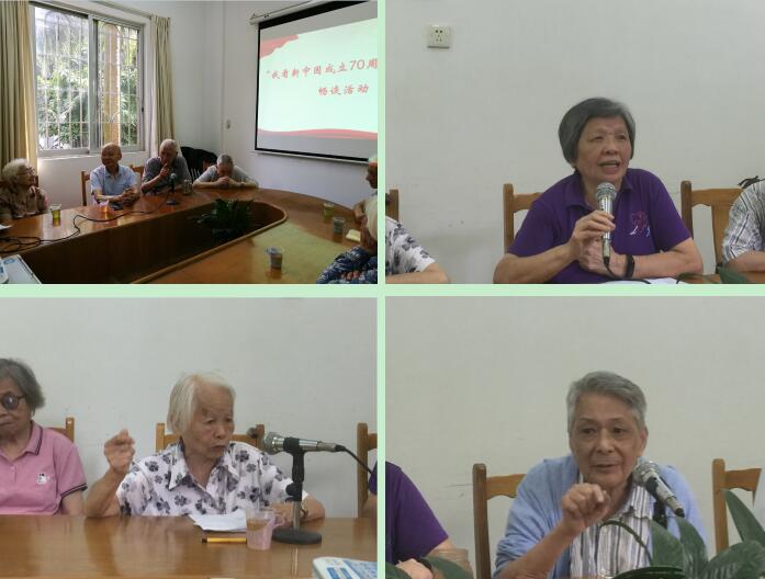 畅谈活动气氛热烈,罗畹华、陈化成、黄洪章、袁伟时、陈国强、梁贤中、黄炳忠、陈振应等同志先后踊跃发言,结合各自亲历的人和事,畅谈新中国成立70年来国家、广东地区及人民生活发生的显著变化,尤其是学校教育事业取得的辉煌成就。