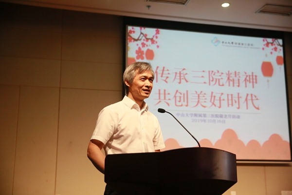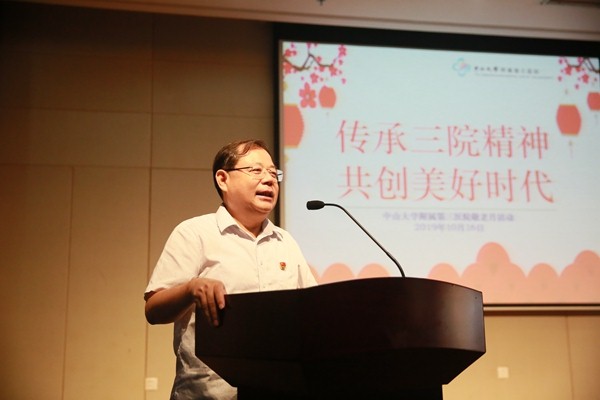 10月16日,为庆祝中华人民共和国成立70周年,更好地弘扬中华民族“尊老、敬老、爱老、助老”的光荣传统,中山三院在医院综合楼20楼报告厅举办了“传承三院精神,共创美好时代”2019年离退休职工敬老祝寿会。院长戎利民,党委书记丘国新,党委副书记、纪委书记赵婉文,总会计师杨正云以及相关职能科室负责人与二百多位离退休职工欢聚一堂,共贺寿辰。
