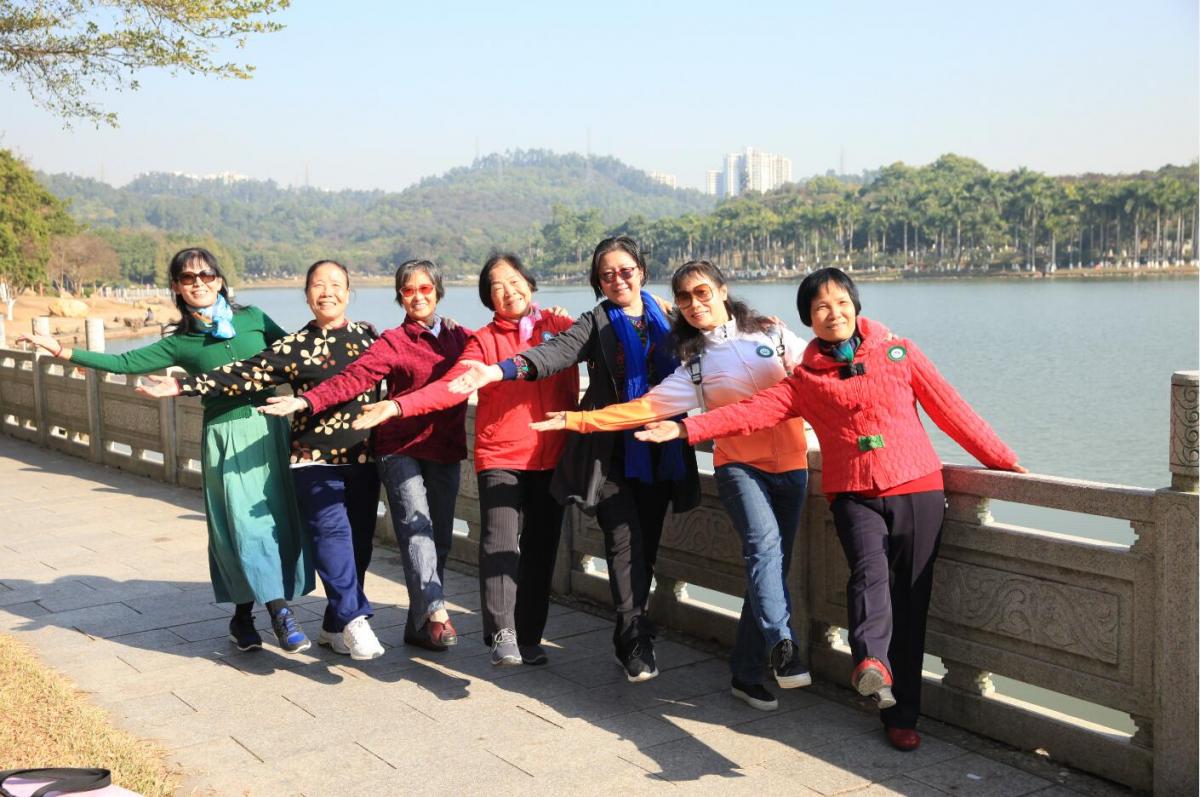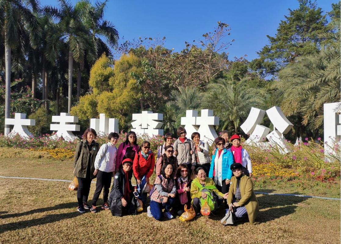 大夫山森林公园位于广州市番禺区,总面积约9000亩,是广州地区生态型森林公园,被称为“番禺氧吧”,非常适宜老同志户外活动。上午9时许,来自不同校园、不同单位的退休教职工们相继随车来到大夫山森林公园南门处集中,大家相见甚欢,纷纷合照留影。冬日的番禺大夫山艳阳高照、晴空万里,公园四周郁郁葱葱、湖光碧水,别有一番风景。老同志们三五成群,精神抖擞沿着湖边健步而行,时而驻足观赏,时而拍照留下倩影,他们呼吸着清新空气,欣赏着初冬美景,锻炼身体的同时,交流畅谈,放飞心情,传递着正能量。