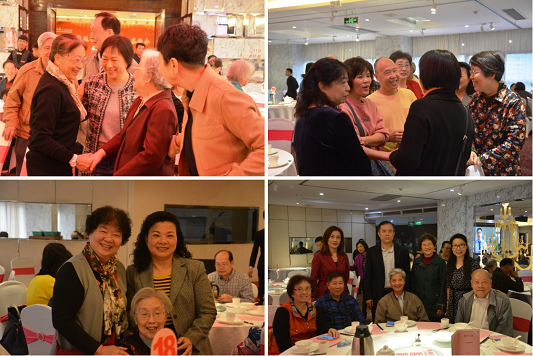 接着学院领导班子集体向每一桌的老同事们敬茶致意,大家共品香茗、畅谈人生,重温师生情谊,再叙校园往事。其乐融融、欢声笑语的情景,将尊师重道的学院文化传承表现得酣畅淋漓!