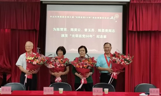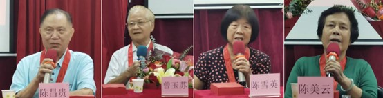 陈昌贵、曾玉苏、陈雪英、陈美云先后发表感言,满怀深情地回顾个人的入党经历和在党的悉心教育培养下的成长故事,表达对党的深厚情感、对获得荣誉的光荣与自豪,表示在未来的日子里将继续感党恩,践行初心使命,退休不褪色,发挥老党员模范引领作用,积极传播正能量。
