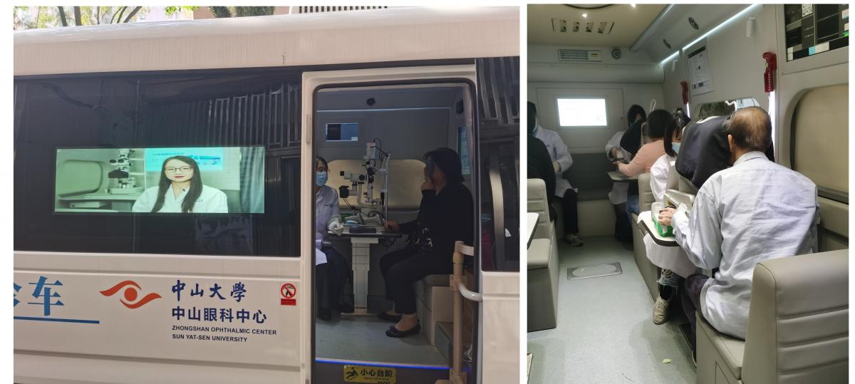 此次义诊活动使用的5G智能眼科巡诊车,是我校自主研发的科技成果,也是全国首创搭建移动智能眼健康服务的平台。在活动现场,医生通过巡诊车车载检查设备,10多分钟内即可完成视力、验光、眼压、裂隙灯显微镜、眼底相机及OCT扫描仪等6项检查,全方位覆盖眼前段至后段结构,可筛查九成以上常见眼病。检查结束后,医生根据上传至云端的检查结果出具远程分析报告,受检者可直接通过手机小程序查阅检查结果及报告。