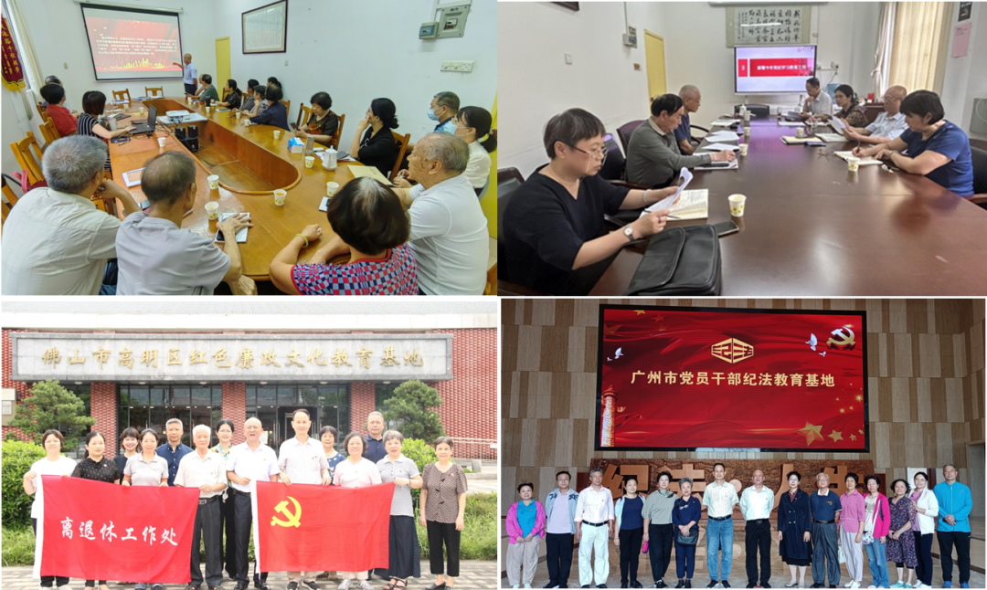 扎实开展党纪学习教育。组织全体党员原原本本、逐章逐条学习《条例》。指导各离退休党支部运用好学校党纪学习教育宣讲团、警示教育典型案例材料。党工委书记带头为3个支部讲授纪律教育学习党课。组织赴广州花都、佛山高明参访警示教育基地,巩固党纪学习教育成果。
